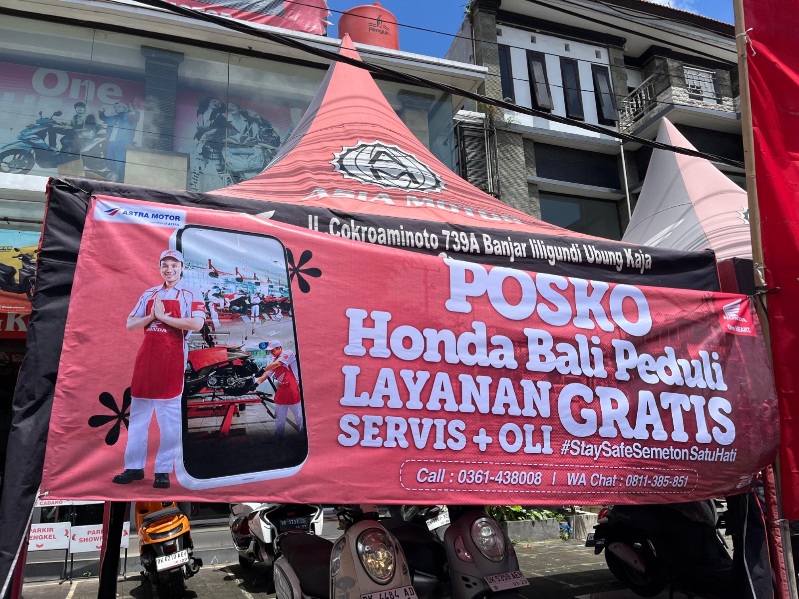 (Baliekbis.com), Sebagai bentuk kepedulian terhadap masyarakat yang terdampak banjir, Astra Motor Bali menyiapkan program “Posko Honda Peduli”. Melalui program ini, Astra Motor Bali menyediakan layanan servis dan ganti oli gratis di 27 titik posko yang tersebar, untuk membantu meringankan beban konsumen setia Honda. Untuk mendapatkan layanan ini, konsumen dapat menghubungi Honda Care di nomor 0361-438008 atau melalui WhatsApp di 0811385851.