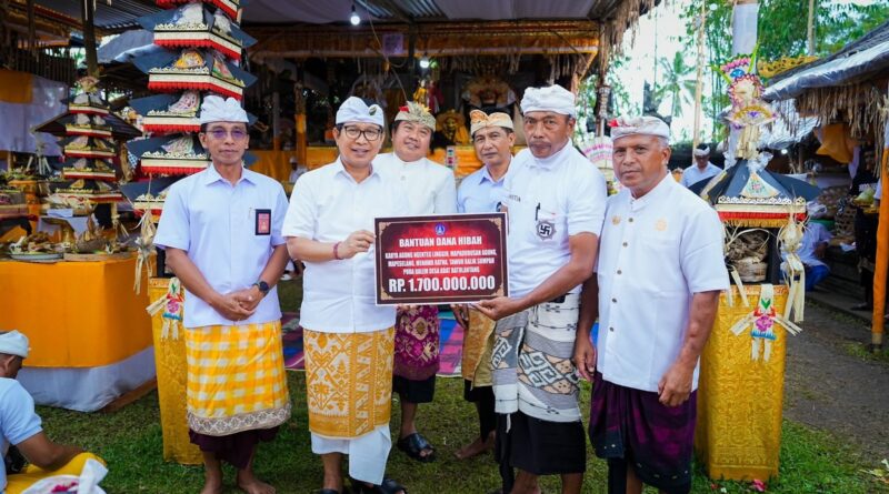 Bupati Badung juga berkesempatan melaksanakan Mendem Pedagingan di Pelinggih Padmasana yang dilanjutkan dengan sembahyang bersama krama Desa Adat Batu Lantang. Sebagai bentuk dukungan Pemkab Badung dalam pelestarian seni, adat, dan budaya Bali, Bupati Adi Arnawa menyerahkan bantuan secara simbolis sebesar Rp 1,7 miliar yang bersumber dari APBD Induk Tahun 2026. Bantuan tersebut diterima langsung oleh Bendesa Adat Batulantang Made Sarpa.