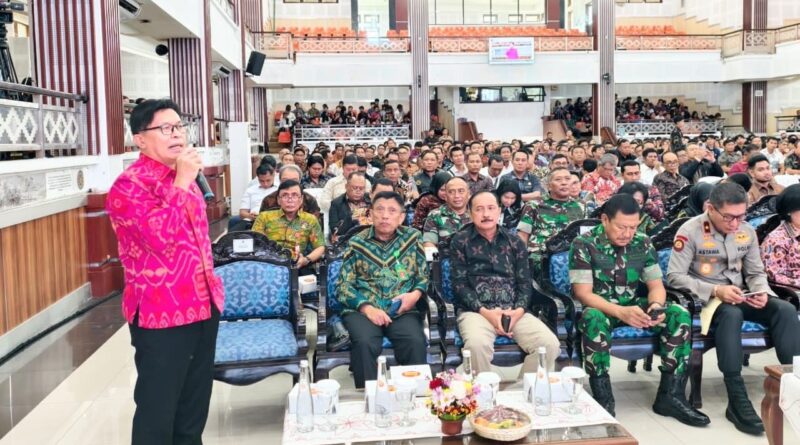 Kegiatan berlangsung di Auditorium Widya Sabha, menghadirkan Wakil Menteri Hukum RI, Edward Omar Sharif Hiariej, bersama Kepala Kanwil Kemenkum Bali, Eem Nurmanah, dan Rektor Universitas Udayana, Prof. Ir. I Ketut Sudarsana, S.T., Ph.D.
