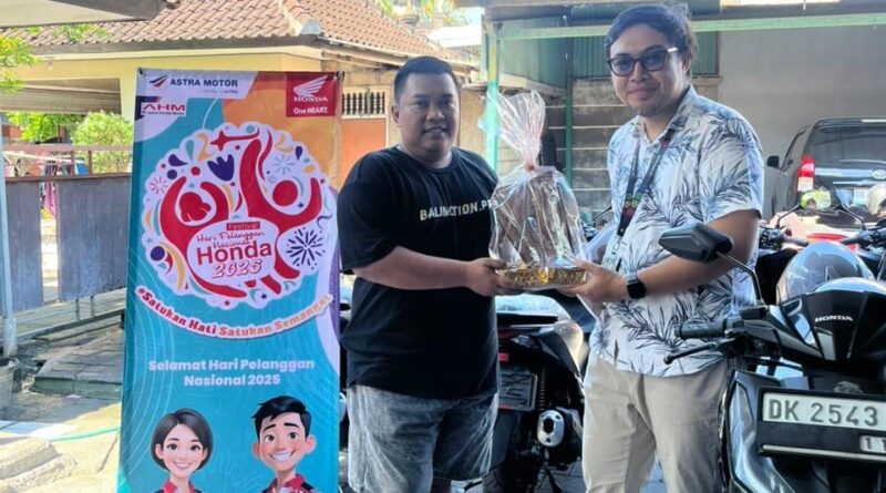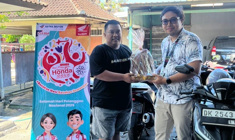 (Baliekbis.com), Memperingati Hari Pelanggan Nasional (Harpelnas) 2025, Astra Motor Bali memberikan apresiasi kepada konsumen setia Honda dengan menghadirkan bingkisan istimewa hasil karya UMKM lokal binaan Astra Motor Bali. Produk kreatif yang dibagikan antara lain parcel dupa dan perlengkapan sembahyang, kain ecoprint, serta cendera mata ramah lingkungan, yang merupakan kolaborasi bersama anak-anak SLB Negeri 3 Denpasar.