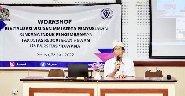(Baliekbis.com), Unit Pengembangan Pembelajaran dan Penjamin Mutu (UP3M) Fakultas Kedokteran Hewan (FKH) Universitas Udayana mengadakan Workshop Revitalisasi Visi dan Misi serta Penyusunan Rencana Induk Pengembangan Fakultas Kedokteran Hewan Universitas Udayana secar hybrid, Selasa 28 Juni 2022, bertempat di ruang sidang lantai 1 Gedung FKH Unud Denpasar.