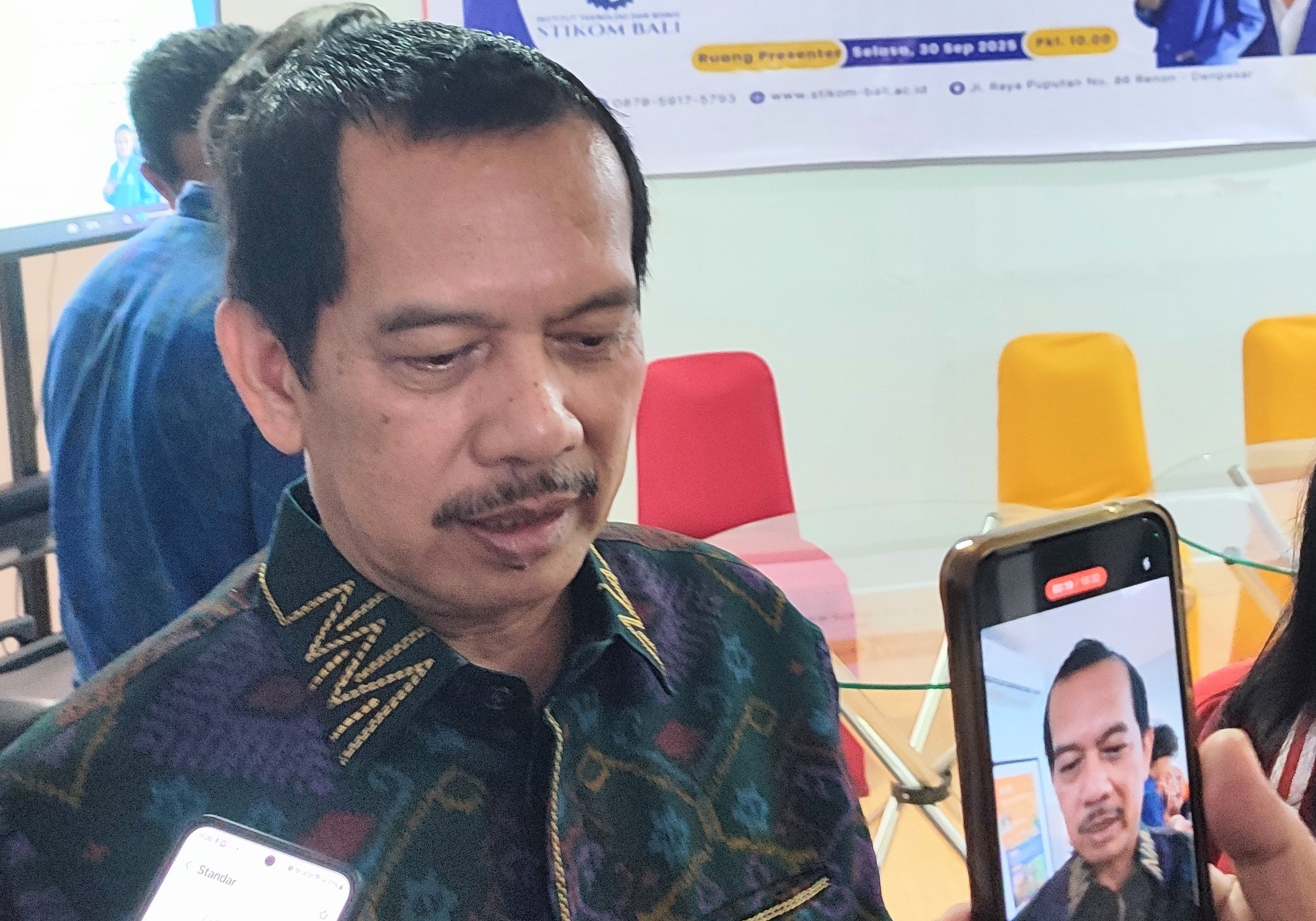 (Baliekbis.com), Rektor ITB STIKOM Bali Dr. Dadang Hermawan bersama Ketua Yayasan Widya Dharma Shanti Denpasar (Induk STIKOM Bali) Drs. Ida Bagus Dharmadiaksa, M.Si.,Ak, melepas tiga mahasiswanya untuk mengikuti program kuliah sambil magang di Jepang, bertempat di kampus ITB STIKOM Bali, Renon, Denpasar, Selasa (30/09/2025).