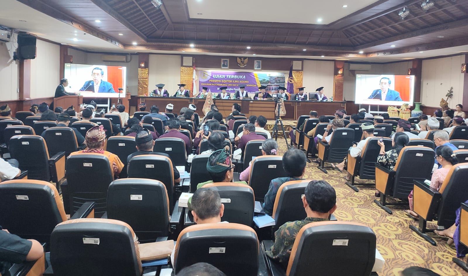 Panitia Penguji Ujian Tertutup Disertasi dengan Promotor Prof. Dr. Drs. I Gusti Ngurah Sudiana, M.Si., Kopromotor Prof. Dr. Made Sri Putri Purnamawati, S.Ag.,M.A., M.Erg. Adapun Dewan Penguji terdiri dari Prof. Dr. Dra. Relin D.E., M.Ag., Prof. Dr. I Nyoman Alit Putrawan,S.Ag.,M. Fil.H., Prof. Dr. I Nyoman Subagia, S.Ag., M.Ag., Prof. Dr. Drs. I Made Surada, M.A., Dr. I Made Dian Saputra,S.S., M.Si., Prof. Dr. Dra. Ni Ketut Srie Kusuma Wardhani,M.Pd. dan Prof. Dr. I Dewa Gede Palguna,S.H.,M.Hum.