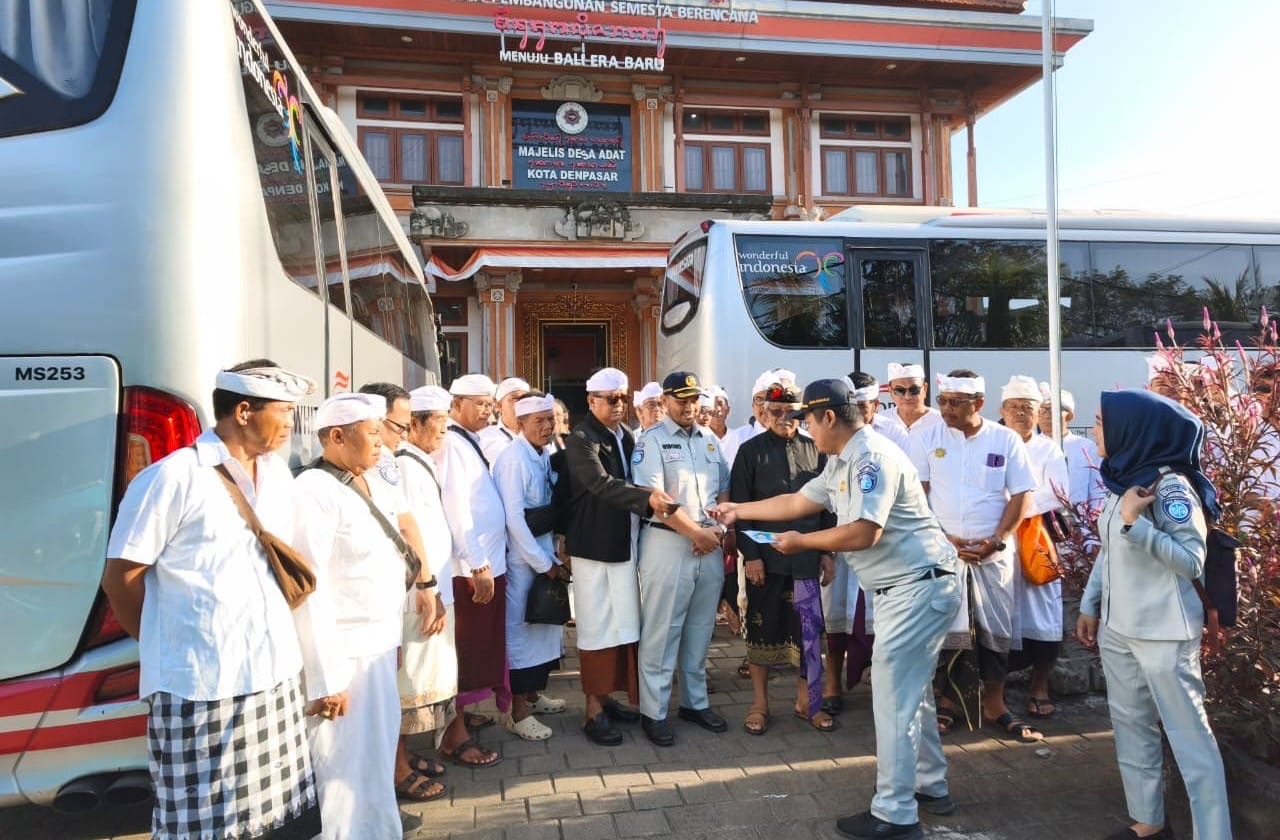 (Baliekbis.com), Majelis Desa Adat (MDA) Provinsi Bali bersama Jasa Raharja melepas peserta program Tangkil Gratis ke Pura Besakih dalam rangka Karya Ida Batara Turun Kabeh (IBTK), Minggu (19/4/2026) pukul 07.30 Wita. Pelepasan dilakukan oleh Panyarikan Agung MDA Provinsi Bali, Dr. Dewa Nyoman Rai Asmara Putra, SH., MH., didampingi Patajuh Bandesa Agung Baga Kerjasama, Informasi, Inovasi, dan Pengelolaan Data MDA Provinsi Bali, I Made Abdi Negara, atas seizin Bandesa Agung MDA Bali.