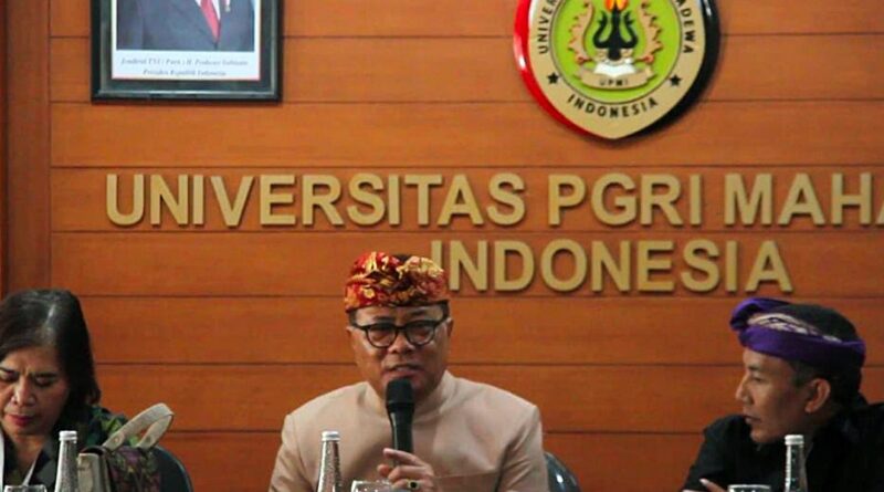 (Baliekbis.com), Melestarikan lontar pada dasarnya berarti menjaga jati diri dan kebijaksanaan budaya Bali. Hal tersebut disampaikan Rektor Universitas PGRI Mahadewa Indonesia (UPMI) Bali, Prof. Dr. Drs. I Made Suarta, S.H., M.Hum., saat membuka Seminar Kolaboratif “Revitalisasi Pengetahuan Tradisional Berbasis Lontar” di Ruang Paseban, UPMI Bali, Sabtu (18/10).