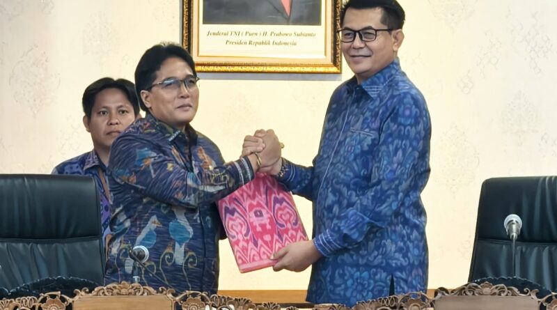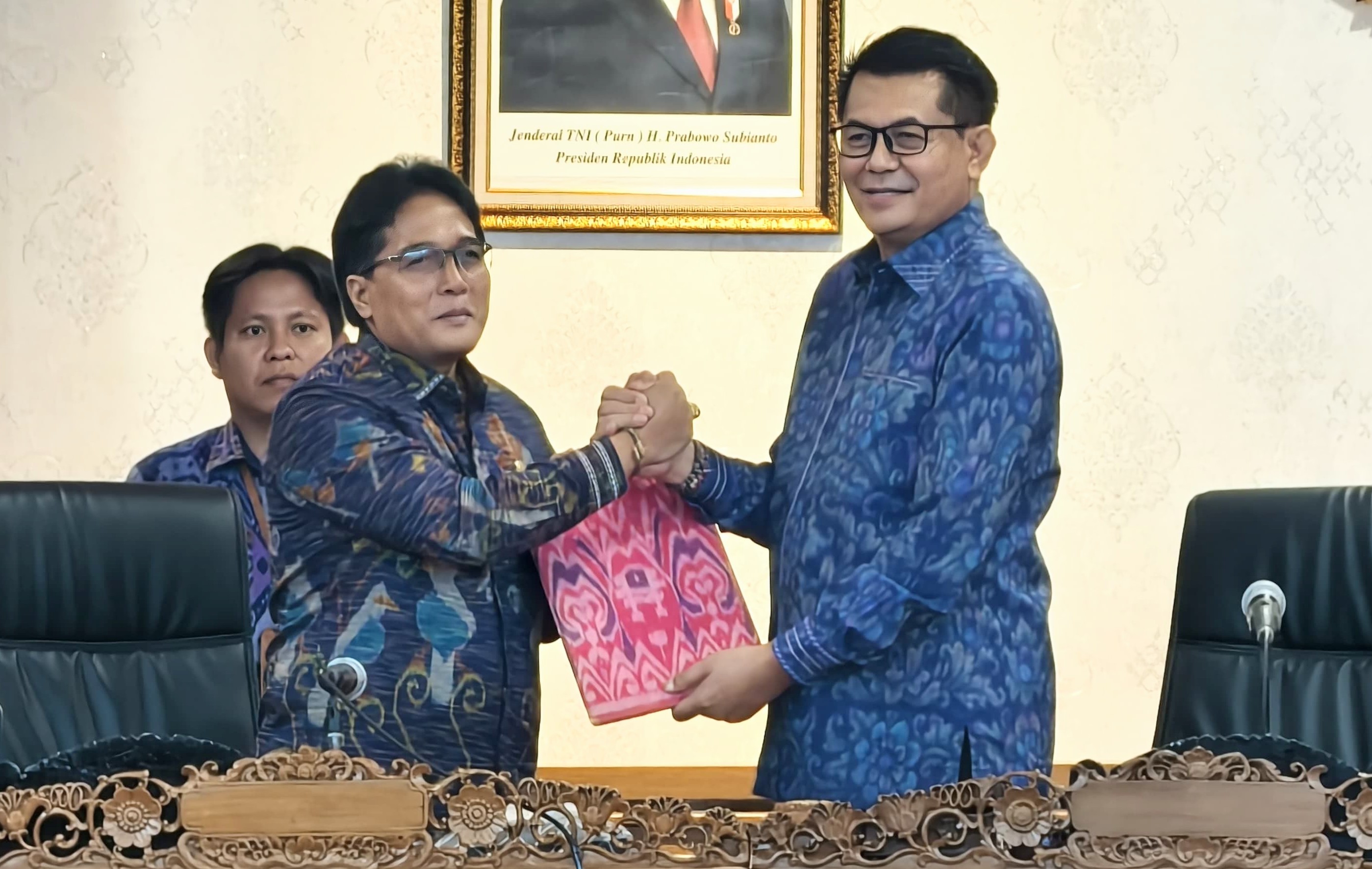 Penyerahan rekomendasi dilakukan Ketua DPRD Bali Dewa Made Mahayadnya kepada Wakil Gubernur Bali yang diwakili Wagub I Nyoman Giri Prasta.